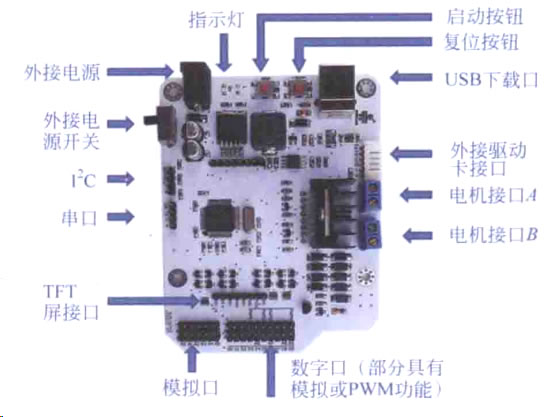 (10) 數字接口(部分具有模擬或PWM 功能)。提供數字信號的輸人輸出功能,部分 接口具有輸入模擬量或輸出PWM 信號或驅動舵機的功能。