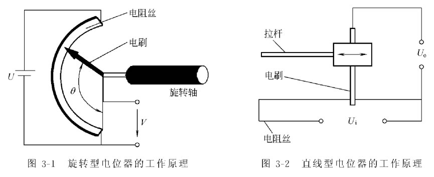 按照電位器式傳感器的結構,可以將其分為直線型和旋轉型兩大類。直線型電位器,如 圖3 - 2所示,主要用于檢測直線位移,其電阻器采用直線型螺線管或直線型碳膜電阻,滑動 觸點也只能沿電阻的軸線方向做直線運動。直線型電位器的工作范圍和分辨力受到電阻器長 度的限制。線繞電阻、電阻絲本身的不均勻性會造成電位器式傳感器的輸入輸出關系的非線 性。旋轉型電位器有單圈電位器和多圈電位器兩種。由于滑動觸點等限制,單圈電位器的工 作范圍只能小于360°,分辨力也有 一 定的限制。如果需要更高的分辨力和更大的工作范圍, 可以選用多圈電位器。